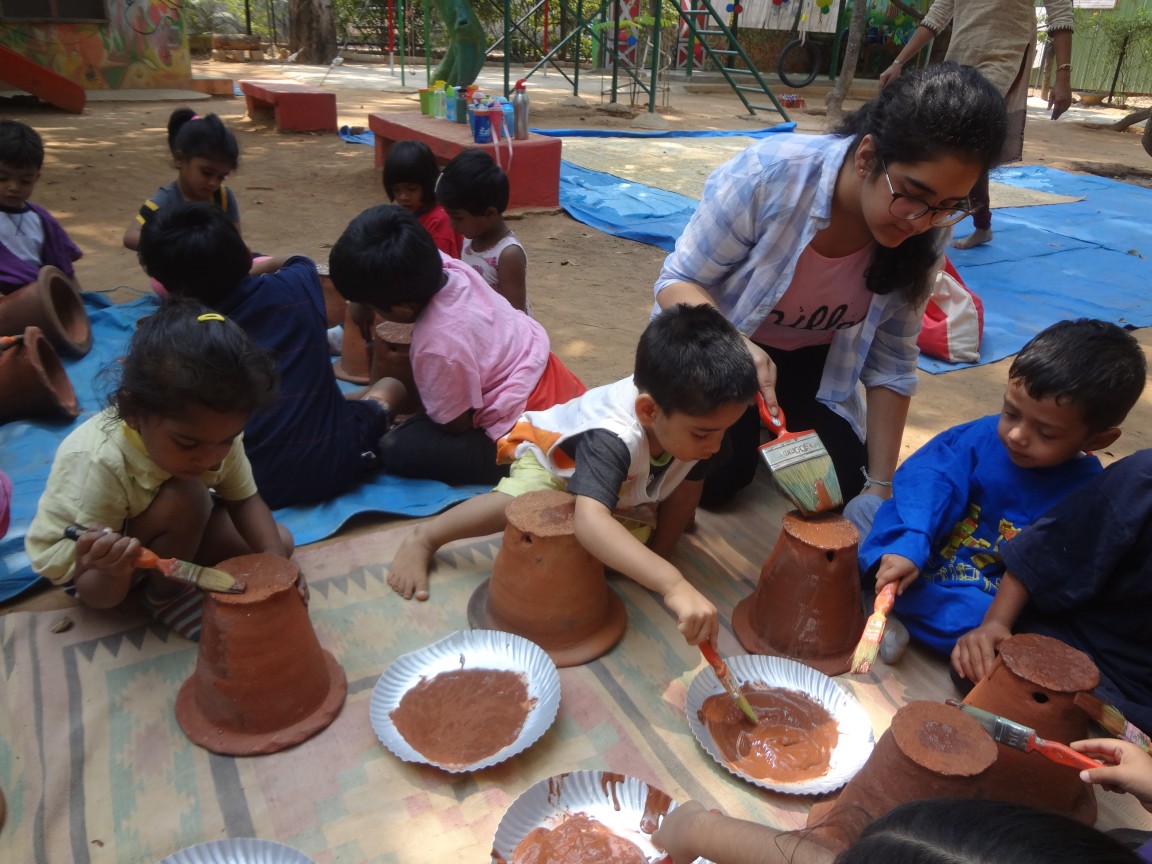 This 2 hour workshop was specially designed to enable kids to appreciate the wonders of nature through gardening. Kids were taken on a nature walk in and around the lush green property and shown the fruits, vegetables and ornamental plants growing there. Kids were encouraged to make their own discoveries and to use all their senses to explore natural wonders from the minute bugs to the massive gulmohar trees towering above. This was interspersed with fun hands on activities such as ...Read More