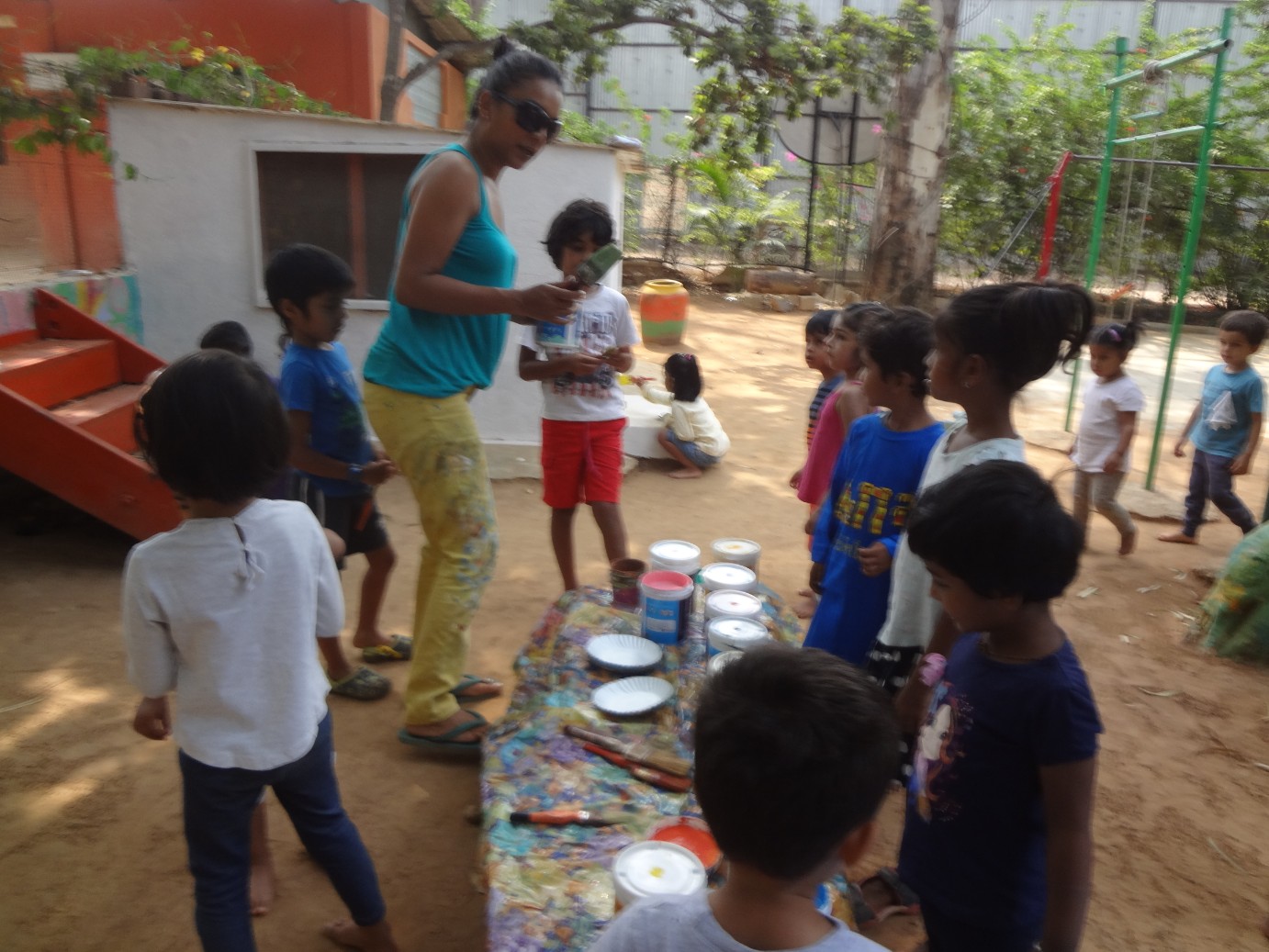 Creativity is a must with children through their growing years. The kids learn to interact and get creative with various mediums like sand, water, glue, paint,etc. in a supervised environment. Playing with mud, holding crayons, practicing free colouring and writing on board helps in motor development of the children. Both fine motor & gross motor development takes place by these various activities done by our little children ,guided by a teacher or facilitator. One such Activity albeit a little messy ...Read More